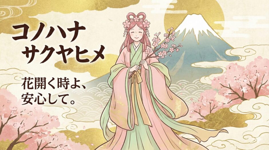 その名は「桜の花が咲き誇るように美しい女性」を意味し、儚くも華やかな生命の象徴とされています。一方で、父神より富士山を譲り受けたことから、日本最高峰・富士山の守護神(神体山)として鎮座し、東日本一帯を守護する強大な力を持つ女神でもあります。