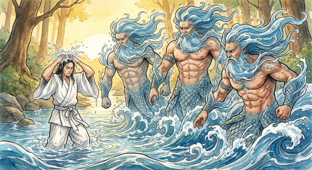ワタツミが誕生した瞬間は、日本神話の中でも最も重要な「禊」のシーンです。